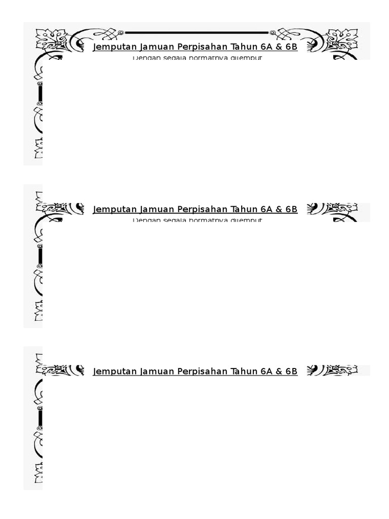 14 julai 2017 (jumaat) jam : Contoh kertas kerja jamuan hari raya.docx. Text of kad jemputan jamuan hari raya. Download lagu kad jemputan (11.9mb) dan streaming kumpulan lagu kad jemputan (11.9mb) mp3 terbaru di metrolagu dan nikmati, video klip kad jemputan mp4, lirik lagu kad jemputan full album. Melayari koleksi kami kad jemputan templat.