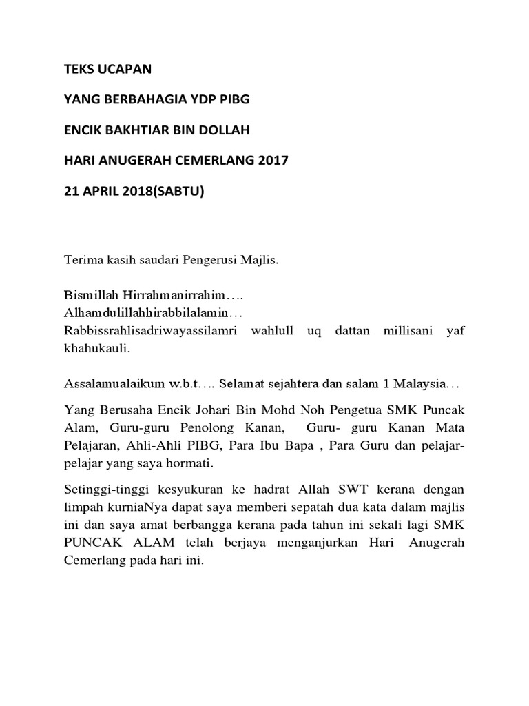Semoga majlis ini menjadi titik permulaan buat semua exco khususnya dalam menjalankan tugas dengan lebih amanah. Teks pengacara hari anugerah cemerlang akademik. Majlis pelancaran nilam 2018full description. Teks pengacara majlis anugerah kecemerlangan smk kampong jawa. Pihak majlis serta seluruh warga sk batang kali, turut sama merakamkan ucapan terima kasih yang tidak terhingga kepada seluruh hadirin dan hadirat khususnya kepada yang berhormat tn.